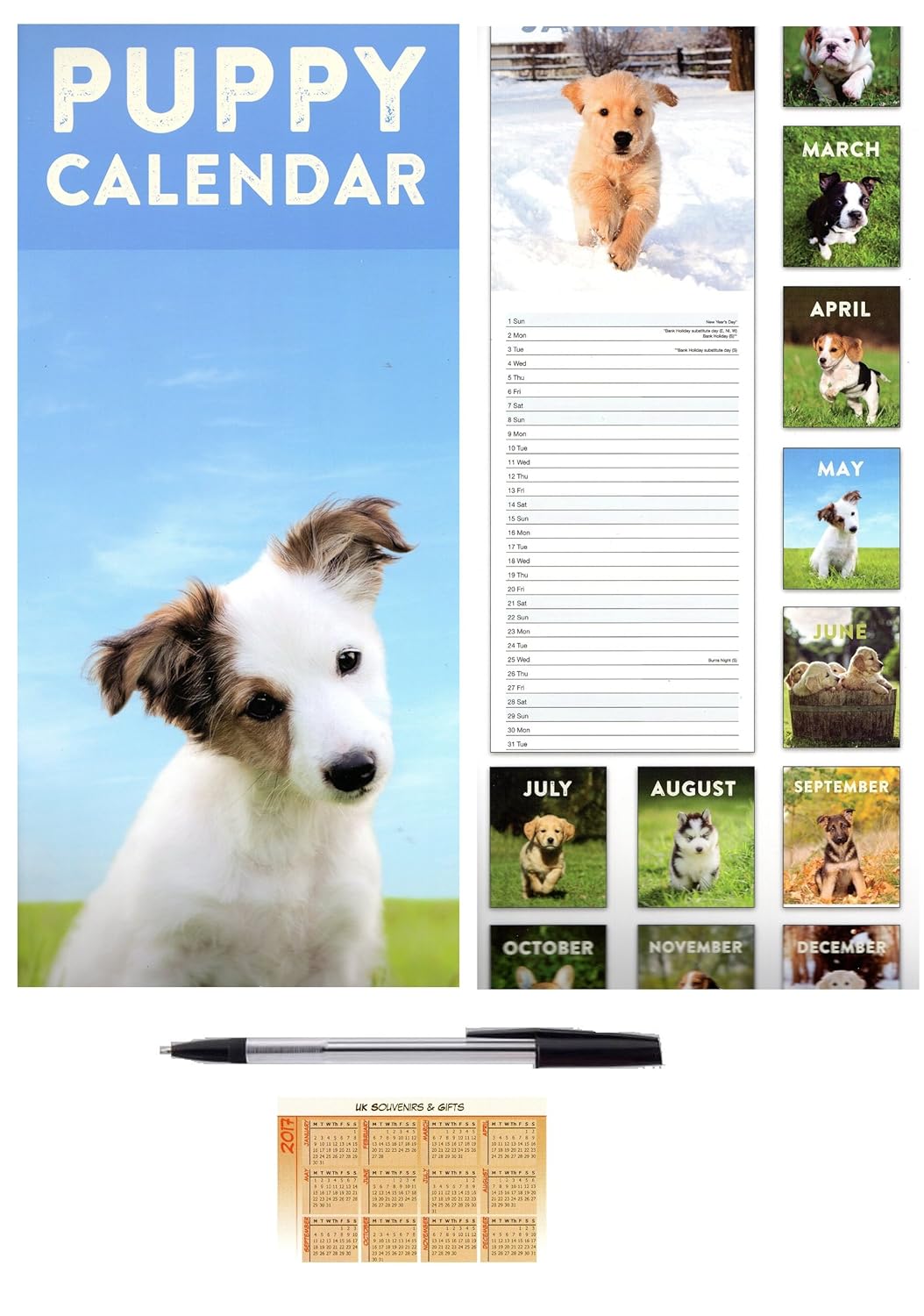 Télécharger 2017 chiot Hauteur slim Calendrier mural avec stylo de cadeau d'anniversaire de Noël Motif chiens chiots Slimline