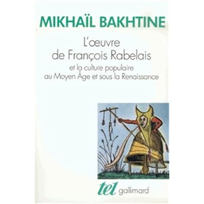 "Si Rabelais, explique l'auteur, nous fait l'effet d'un solitaire qui ne ressemble à nul autre parmi les grands noms de la littérature des quatre derniers siècles, au contraire, sur la toile de fond du trésor populaire convenablement mis à jour, ce sont ces quatre siècles d'évolution littéraire qui risquent plutôt de nous paraître spécifiques, privés de ressemblance avec quoi que ce soit, tandis que les images de Rabelais nous apparaîtront tout à fait à leur place dans l'évolution millénaire accomplie par la culture populaire."Afin de comprendre Rabelais, il faut se débarrasser de toutes les conceptions et notions artistiques ancrées dans l'esprit des contemporains, situer sa place et son rôle dans le vaste flot de la culture comique populaire qui s'est opposée à la culture sérieuse, officielle, des classes dominantes.Poche=471 pages. Editeur =Gallimard (1982). Collection =Tel. Langue =Français. ISBN-10=2070234045. ISBN-13=978-2070234042. Dimensions du produit=19 x 12,4 x 2,5 cm. Moyenne des commentaires client =5.0 étoiles sur 5 1 commentaire client. Classement des meilleures ventes d'AmazonLettres modernesCritiques, analyses et essaisLittérature française=58.303 en Livres (Voir les 100 premiers en Livres) .zg_hrsr { margin: 0; padding: 0; list-style-type: none; } .zg_hrsr_item { margin: 0 0 0 10px; } .zg_hrsr_rank { display: inline-block; width: 80px; text-align: right; } n°551 dans Livres > Etudes supérieures > Université > n°913 dans Livres > Littérature > Livres de référence > n°4192 dans Livres > Littérature >.Un ouvrage de référence, indispensable à tout amateur de Rabelais ou a qui s'intéresse a la philosophie du rire. Une érudition littéraire impressionnante. Et dire que c'est un russe qui l'a écrit!.